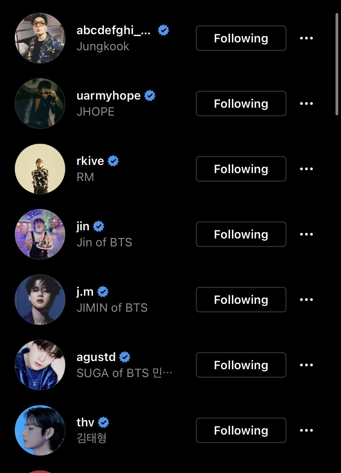 Bts Charts On Twitter Bts Members Now Have Instagram Accounts Https T Co Romvluzc0s Twitter